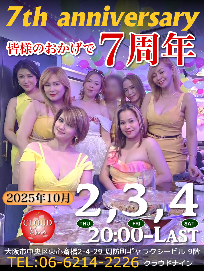 大阪 ミナミのフィリピンクラブ「クラウドナイン」では今後とも、お客様に喜んでいただけるイベントを開催予定です。発表は本ページまたはLINE等で発表させてい頂きますのでお楽しみにお待ちくださいませ!